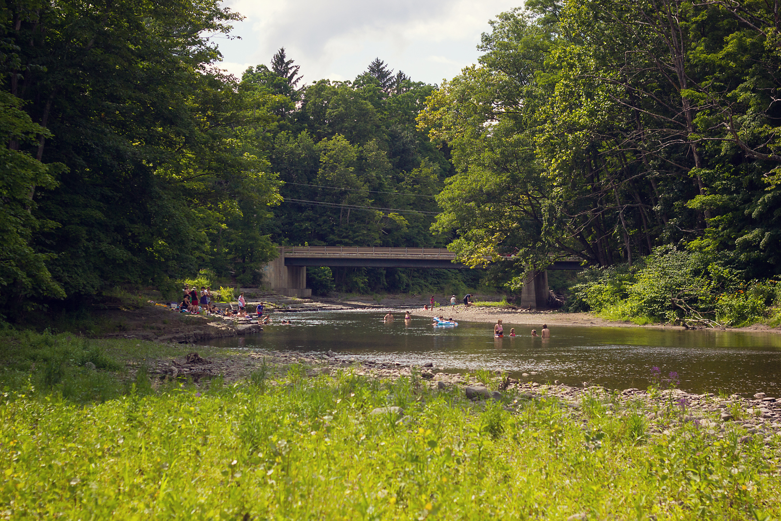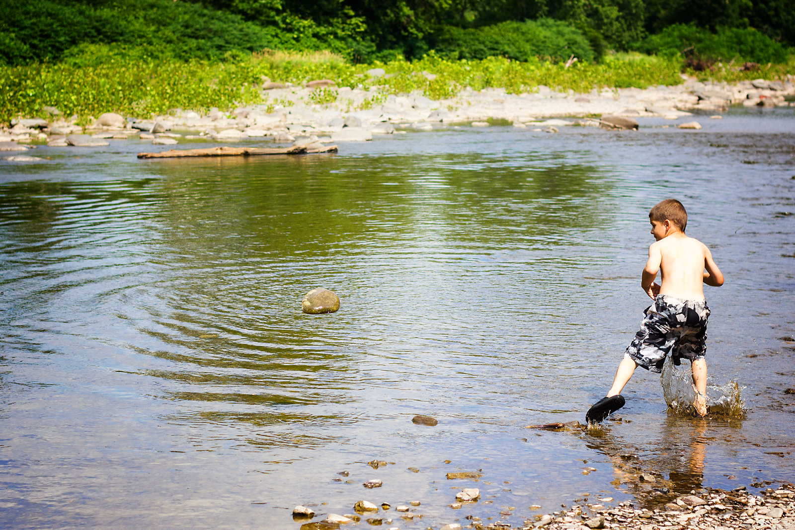 Going swimming in the creek is becoming a summer tradition for our family. The kids are old enough now that it’s too dangerous anymore and they love looking for crayfish and frogs. This is the perfect spot where the deep swimming hole is kind of separate from the flat part and I can safely let the kids roam a bit. And it’s beautiful.