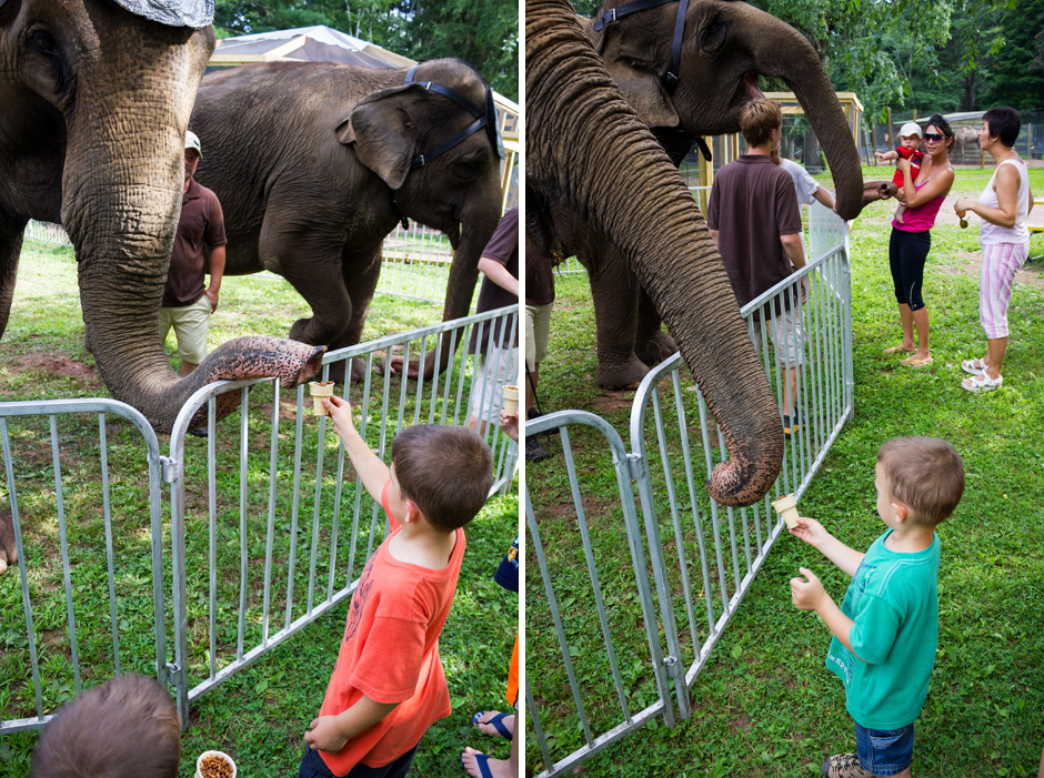 Everybody got to feed and pet the elephants. They really seemed to enjoy the snacks and attention. They are so gentle with their trunks.